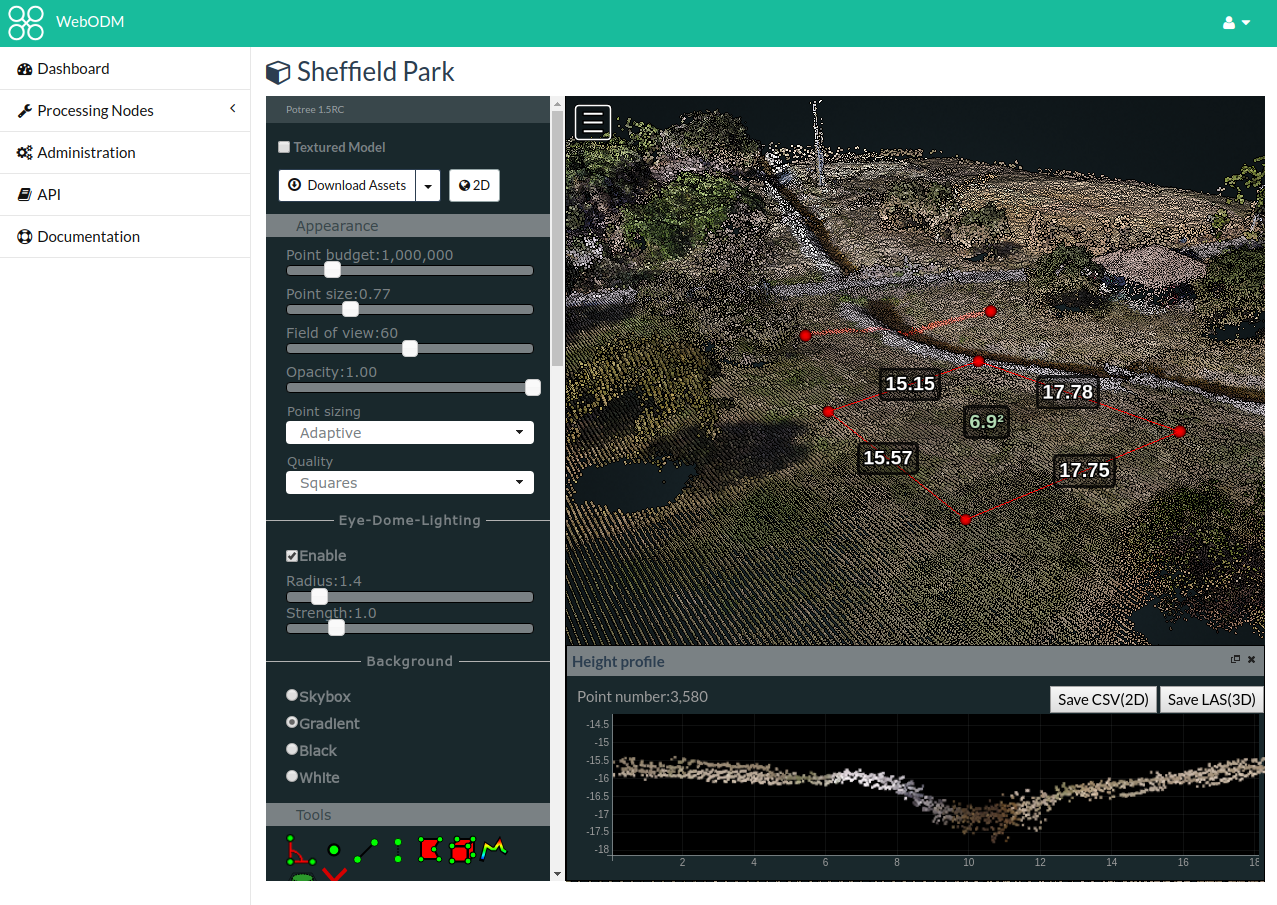 A free, user-friendly, extendable application and API for drone image processing. Generate georeferenced maps, point clouds, elevation models and textured 3D models from aerial images. It uses OpenDroneMap for processing.