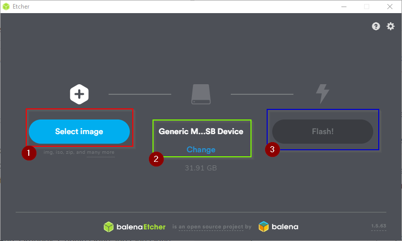 For flashing the image onto the SD card I have used BalenaEtcher