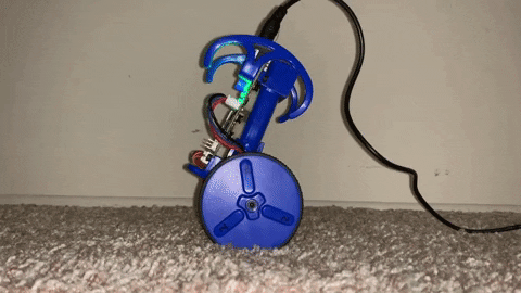 The robot can balance given angle measurements from an on-board IMU sensor, which feeds into a control algorithm that actuates the wheel motors to keep the robot at a stabilizing reference angle.