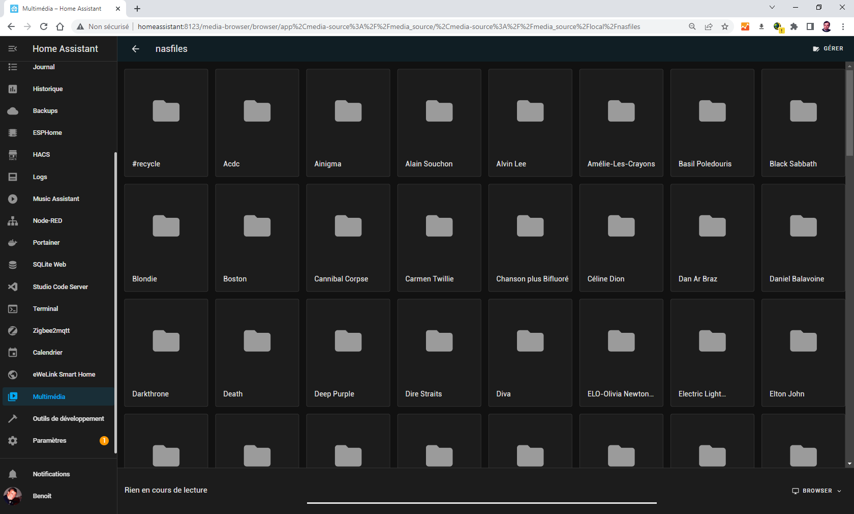 Well thanks OzGav for the suggestion. I thought I'd tried that before but I tried again: For mounting Network mediashell_command: I duplicated the automation code for nas2 and it all works. Just couldn't get the syntax right before. Now I can load my whole music collection, all 2000 albums, into MA. Hopefully the library is stored somewhere so I don't have to reload it every time I start HA. |