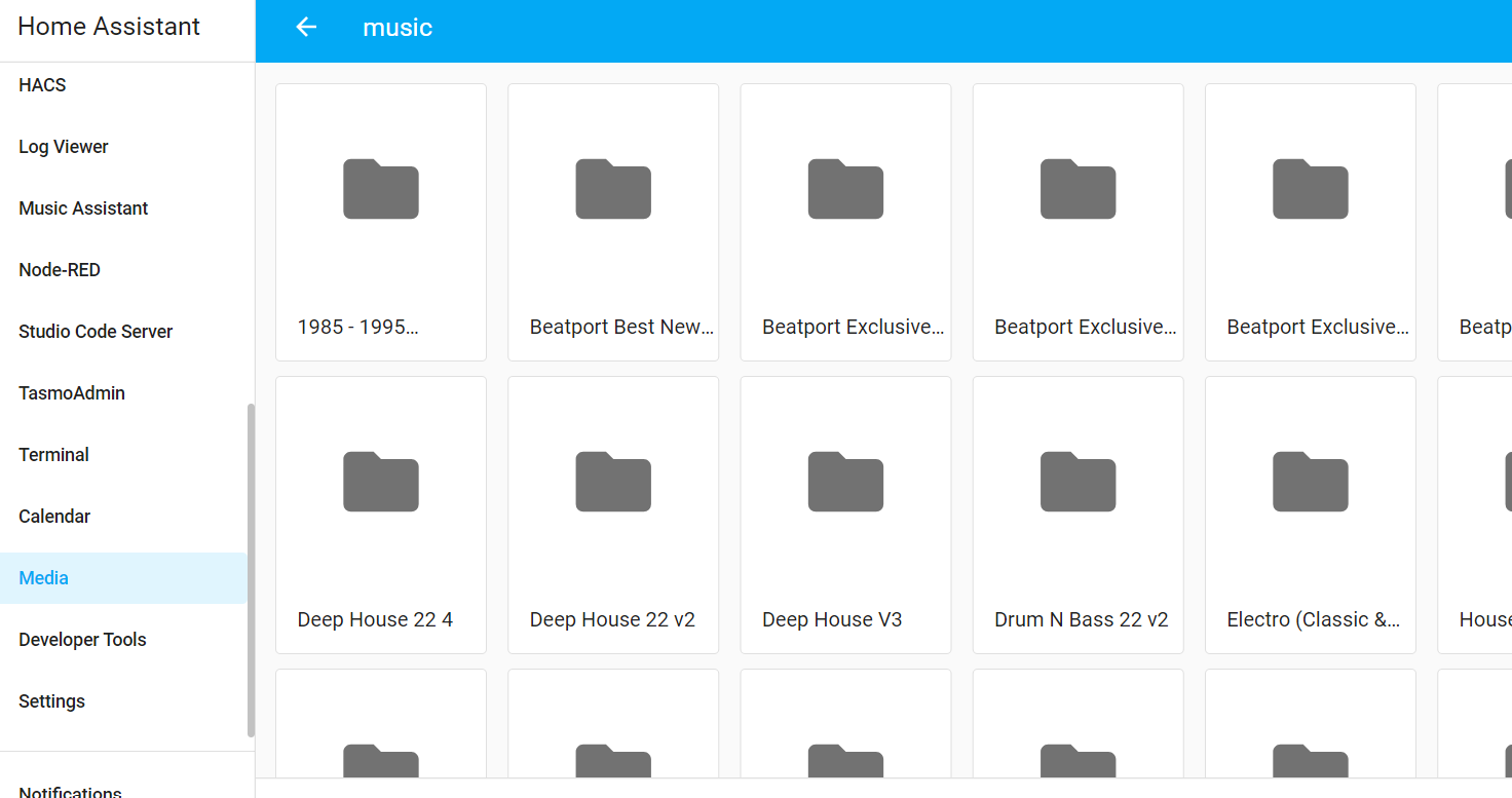 Check configuration.yaml for the following line - if it doesn't exist then insert it Place this code in configuration.yaml to mount the share: Put this automation code in automations.yaml (create automations.yaml if it doesn't exist) After adding the above code, restart Home Assistant and you should be able to see the If you're able to see your music as above, you can now configure MA via its Integration configuration dialogue |