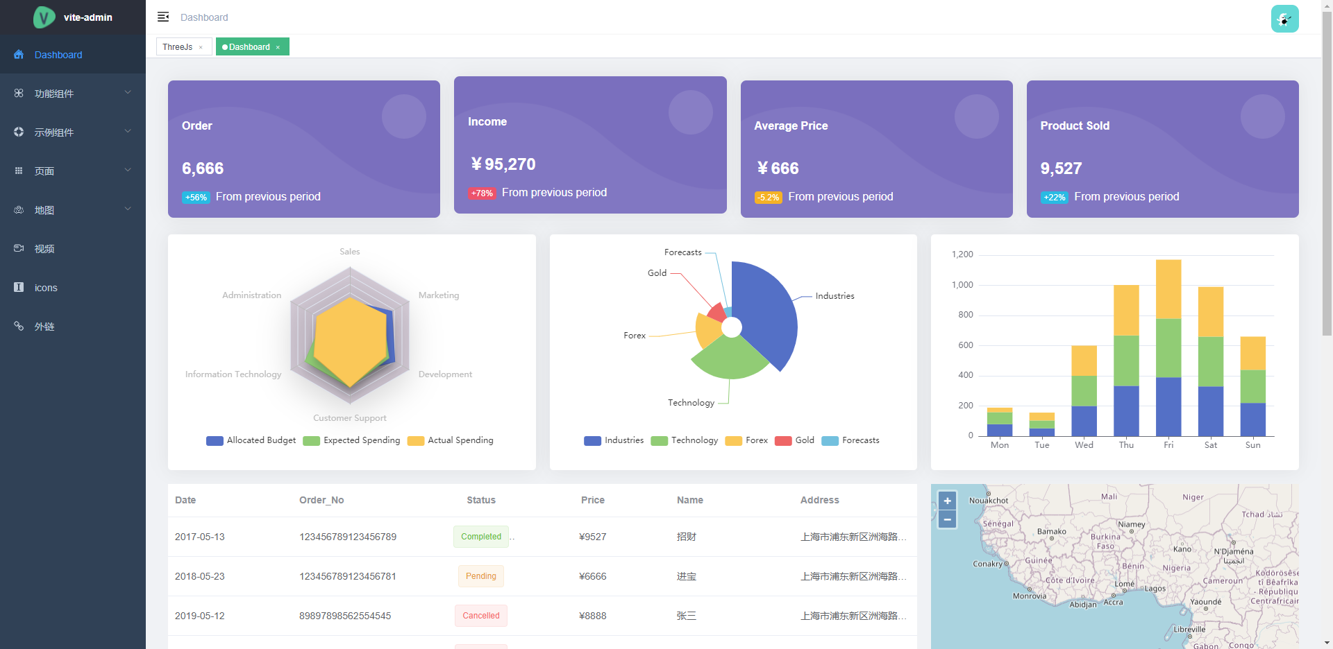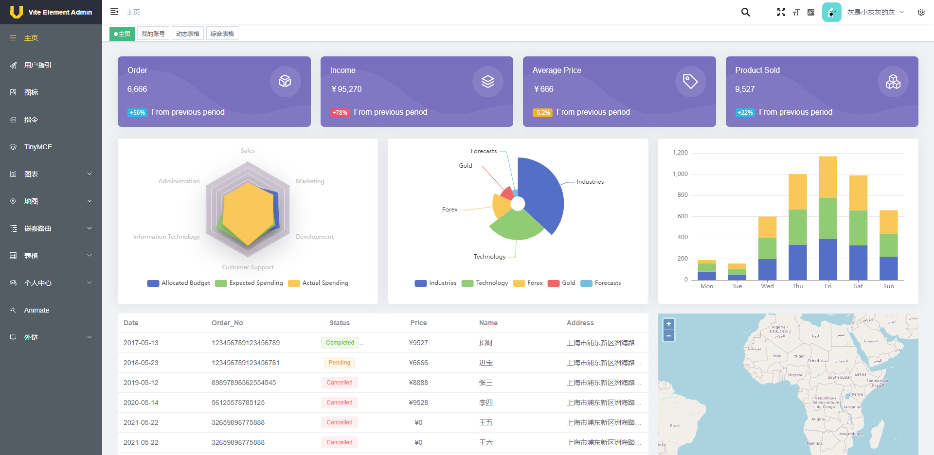 Vite Element Admin 是一个免费开源的中后台模版(Js 版本)。使用了最新的vue3,vite2,pinia等主流技术开发,开箱即用的中后台前端解决方案,也可用于学习参考。该模板功能和JS版本保持一致