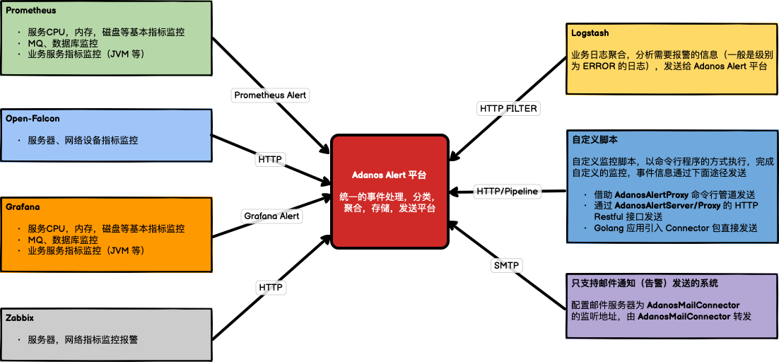 Adanos-alert is an alert notification system developed using Golang. It focuses on notifications, offering rich event aggregation and notification mechanisms, addressing the shortcomings of common monitoring alert systems in terms of notifications.