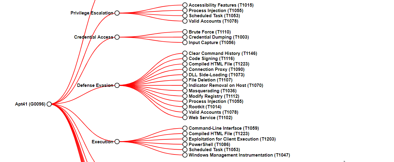 Provides the UI navigation for the APT groups in the graphicsl navigation format. All the Techniques are linked to MITRE ATT&CK page.