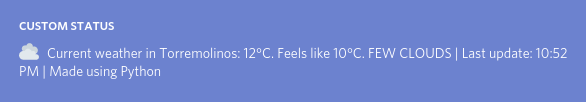 ⛅ Automatized Discord Custom Status using openweathermap.org API