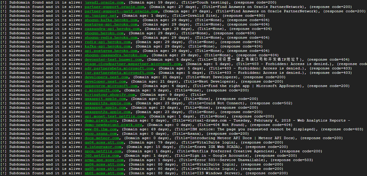 Log file created with all found subdomains to all_subdomains.log and ones that are live and aged less than 90 days to live_subdomains.log