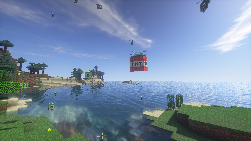 Can hold drone parts, iron ingot, gold ingot, diamond, emerald, or TNT. Wild parts holding a TNT will fly towards you then explode(like a suicide bomber)