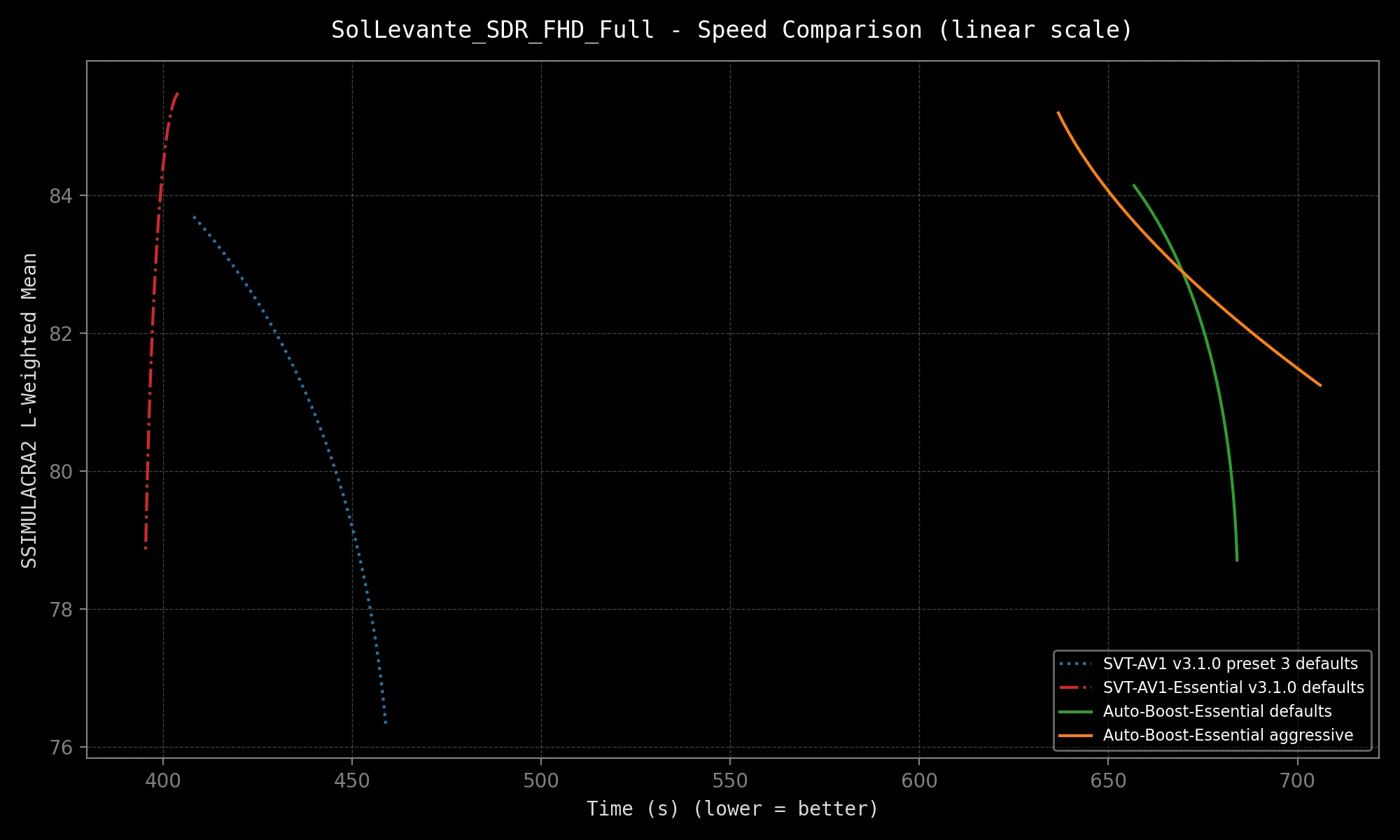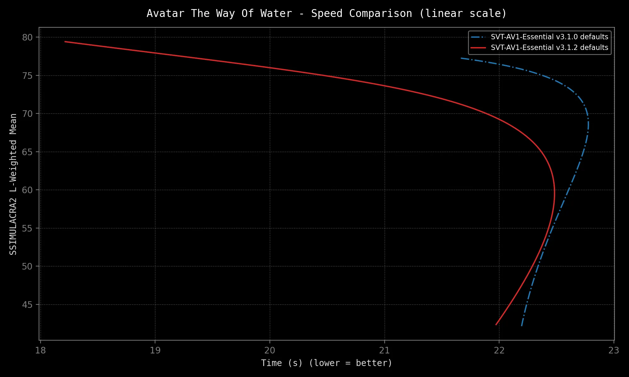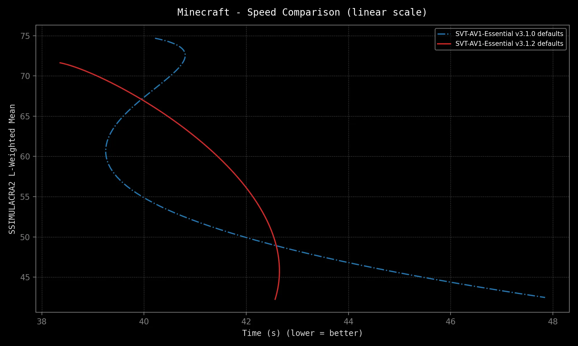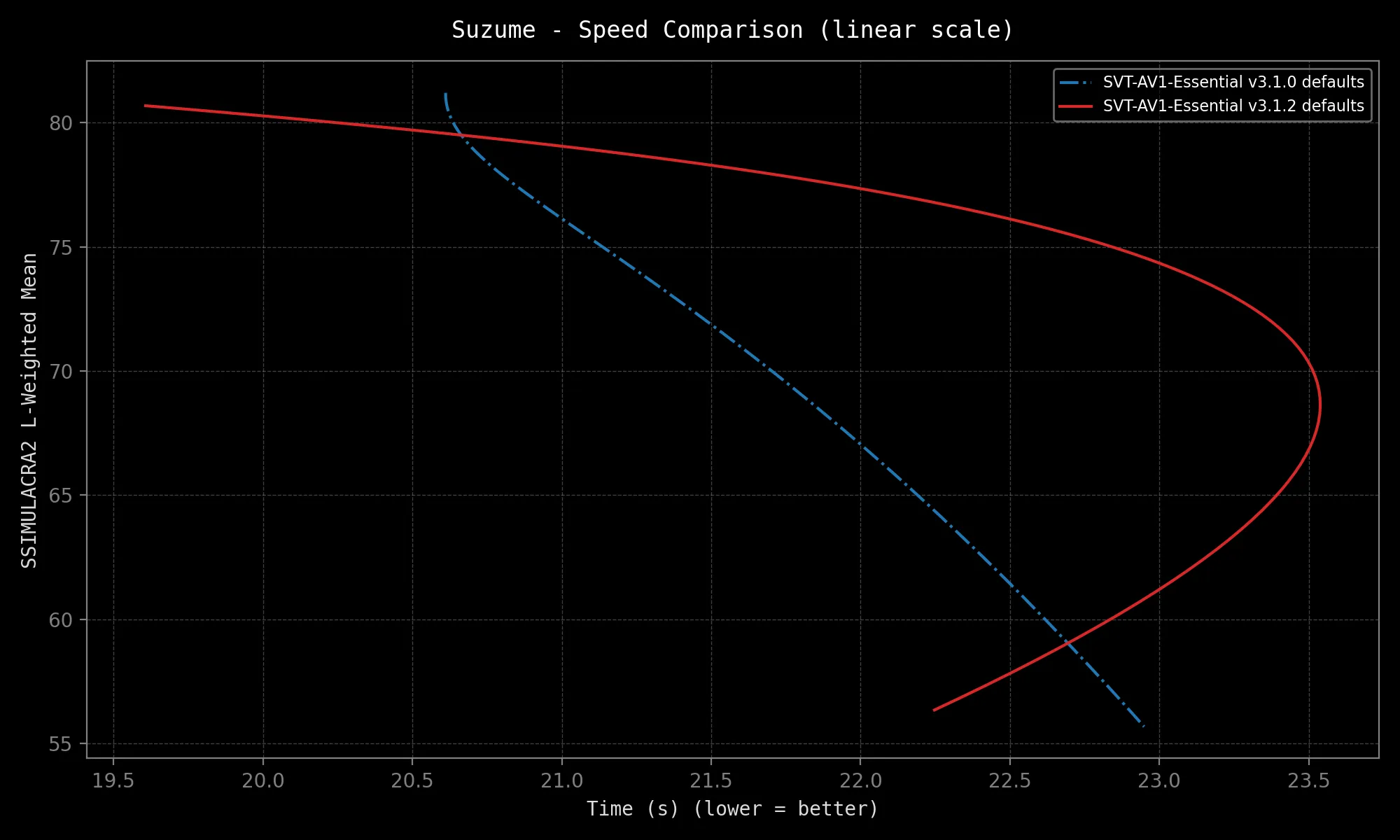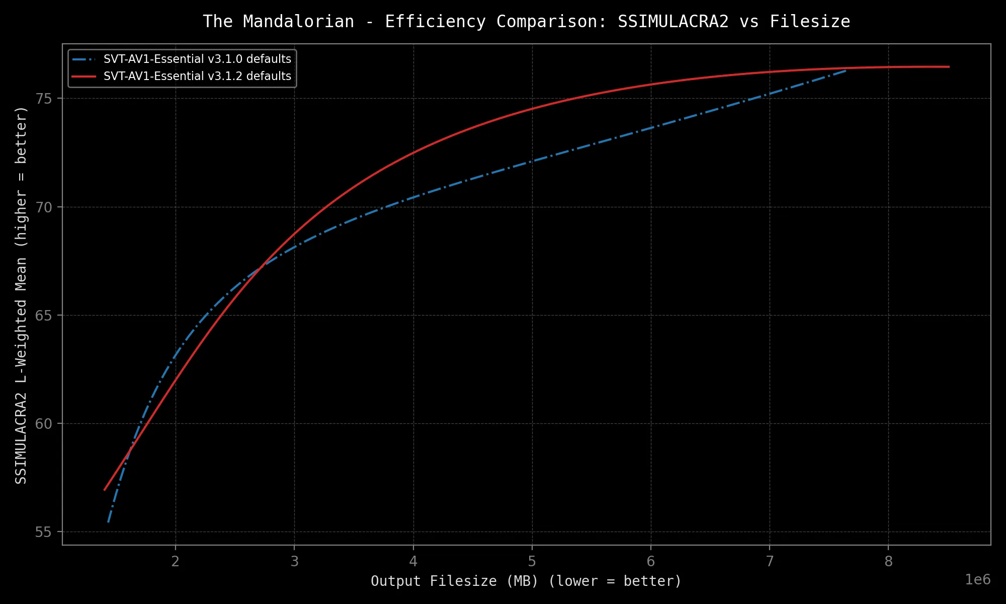 SVT-AV1-Essential sports different defaults from mainline SVT-AV1 in order to provide a better out-of-the-box experience. They include: