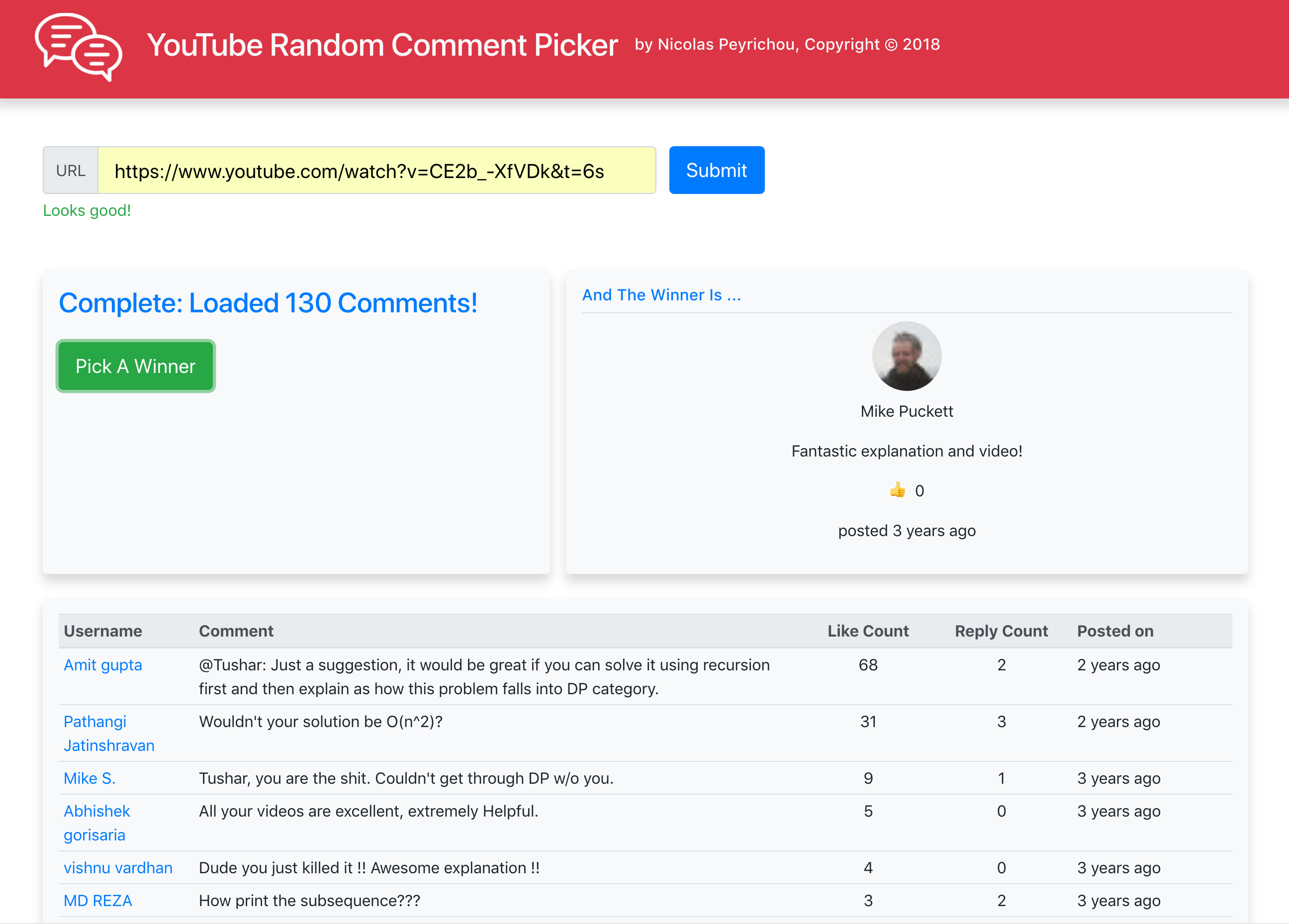 Live demo visit => https://youtube-random-comment-picker.com