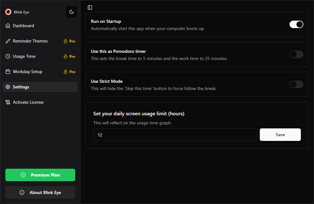 - Run on Startup: Seamlessly integrate Blink Eye into your daily routine.