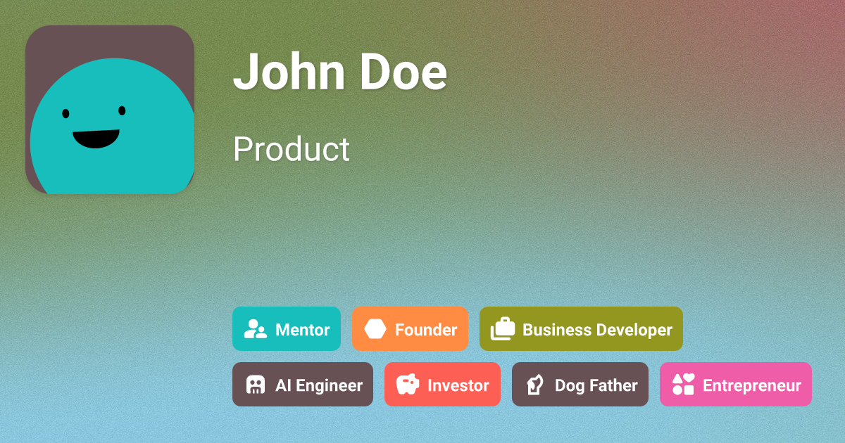 https://peatch-image-preview.vercel.app/api/image?title=John Doe&subtitle=Product &avatar=https://d262mborv4z66f.cloudfront.net/users/149/KO7uaU43.svg&color=FF8C42&tags=Mentor,17BEBB,e8d3;Founder,FF8C42,eb39;Business Developer,93961F,e992;AI Engineer,685155,f882;Investor,FE5F55,e2eb;Dog Father,685155,f149;Entrepreneur,EF5DA8,e7c8