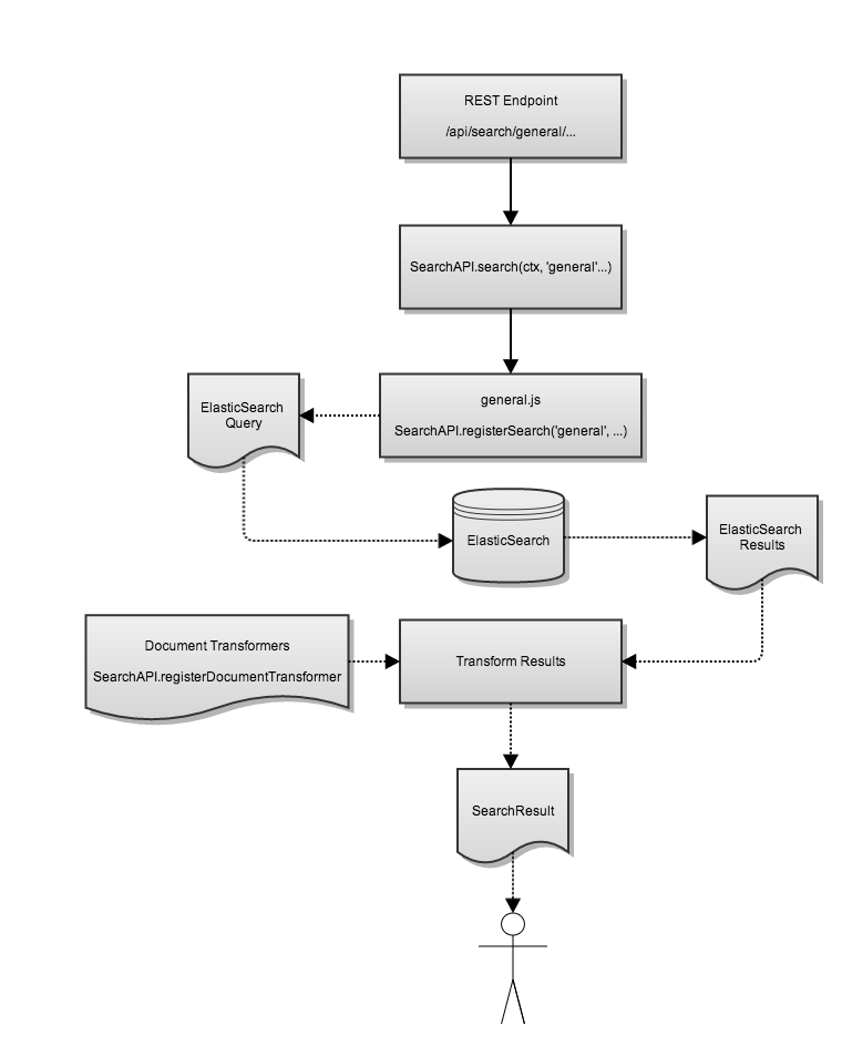 Additionally, you can provide document transformers for a particular resource type (e.g., user, group, content) that will have an opportunity to convert a given set of search results into results that are safe to display to the user. Unless you are providing a new type of resource, this is not necessary to extend if you're just adding a new search.
