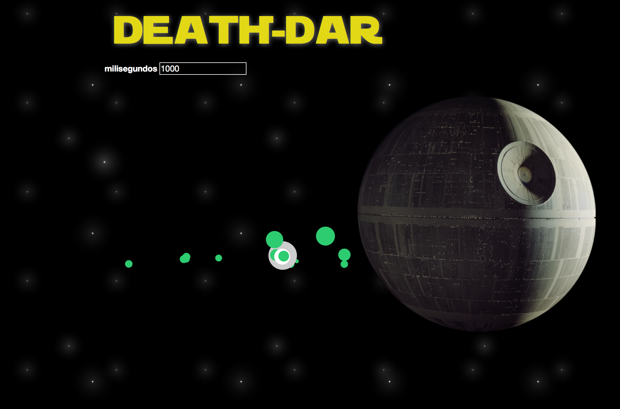 It uses a file for serving the data to move the objects around the 'death star' and makes fake 3D trying to use radius of the circles as reference.