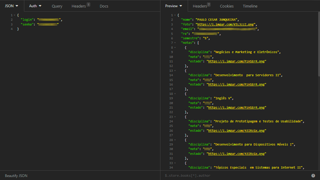 - Are you a student and want to test our API? Enter the web panel we developed clicking here or if you prefer make a POST request at this url