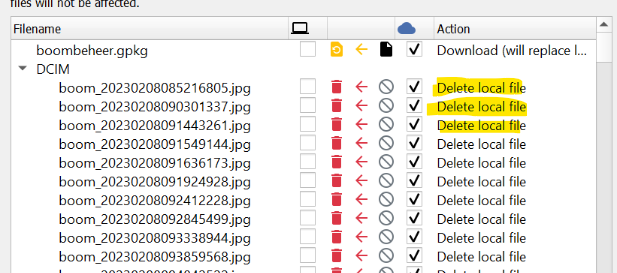 Now, the bigger issue is that whenever we synchronise the same project in the future using Qgis on desktop, it automatically deletes these photos from our local folder (when we 'prefer cloud').