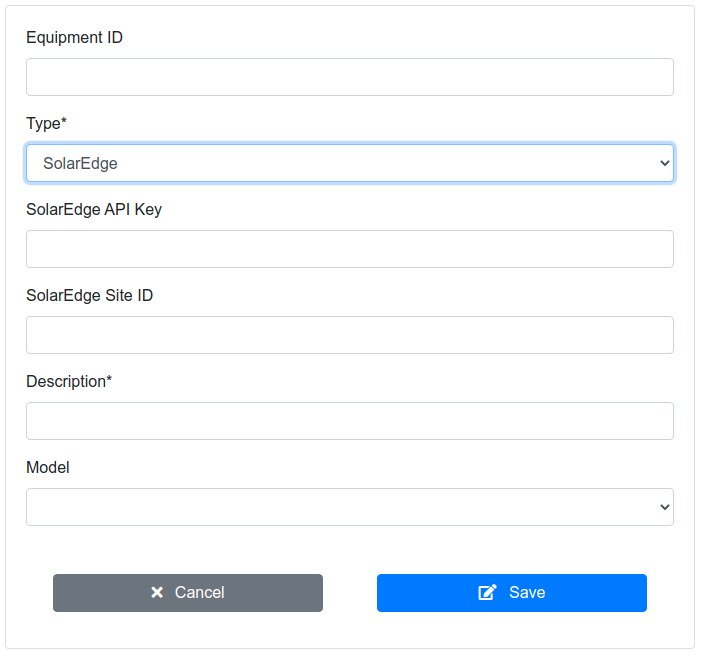 I added a new site and selected SolarEdge equipment. I entered the API Keys, Site ID and equipment ID (I entered the inverter ID).