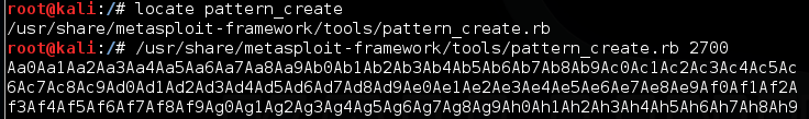 > (flush-output out)Now we need to determine the location in our attack buffer that lands us in EIP. We can use two tools provided by the metasploit framework; pattern_create and pattern_offset. Pattern_create creates a string of a desired sized of a pattern that we can index with pattern_offset.