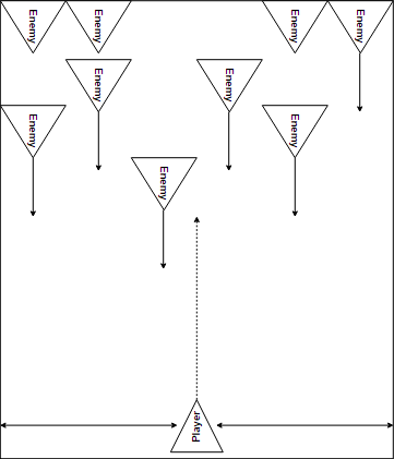 The enemy ships will continuously move down the screen and they will be destroyed if the player shoots them or they will stop being tracked after they move past the bottom of the screen. If the enemy moves past the bottom of the screen the player's score will decrease. Enemies will not spawn on top of other enemy ships and their starting locations will be spaced apart across the screen based on the width of the image.