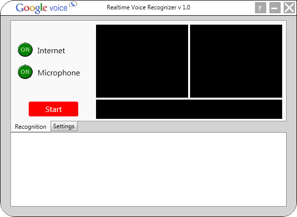 Application is designed for voice recognition in real time and converting it into a text. It using Google Voice unpublished API. Basically it works as is: *1. You turn on your microphone *2. Press Start button *3. Talk something, for example, have a meeting in Skype *4. During your talk application switch audio channel on a small pieces and sends it to Google for recognition *5. Results is visible as text marks at the bottom Text field