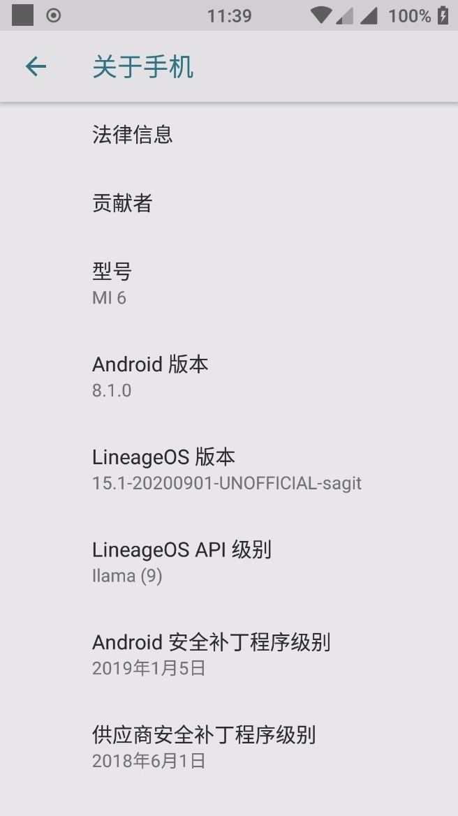 安卓版本8.1.0 (小米6)
