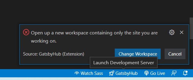 The "Launch Development Server" feature doesn't appear to be working as expected. Project is created using gatsby-cli version: 4.19.0