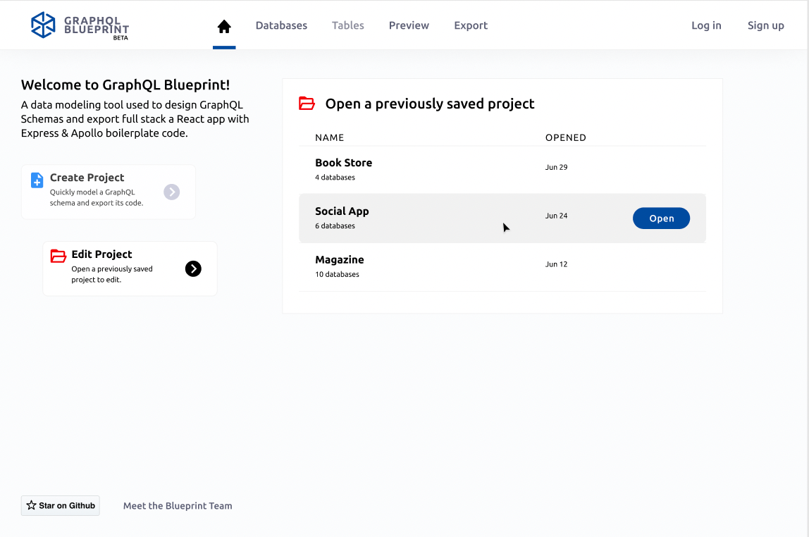 After merging in @kevinberlanga's auth features, we'll want to rebuild the UX for how new projects are created and previously made projects are edited. The following screenshots show our intention: