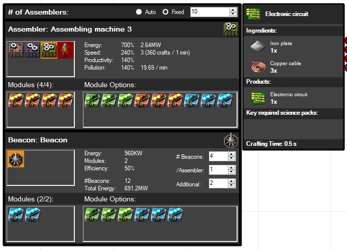 (3) Additional: this specifies the number of additional beacons you will need. So in the example above, if you need to place 2 more beacons above your rows of beacons-assembler and 2 more below your rows (in order to have 8 beacons active on each assembler), you would put in 4.