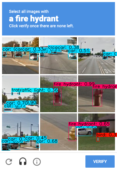 In this part, we will use pretrained weights to make predictions on ReCaptcha.