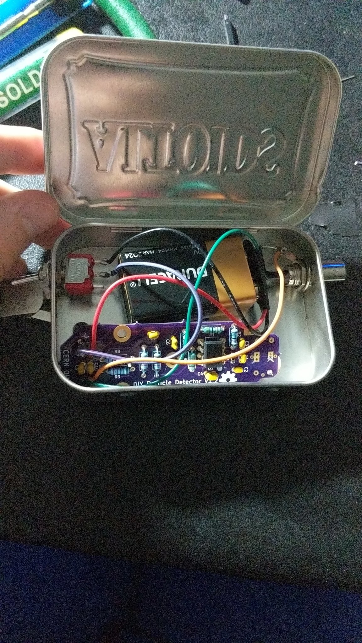 December 2021, Jonathan from Shanghai (14 years old!) sent these pictures of his own build, measuring particle pulses using the WaveWatch oscilloscope: