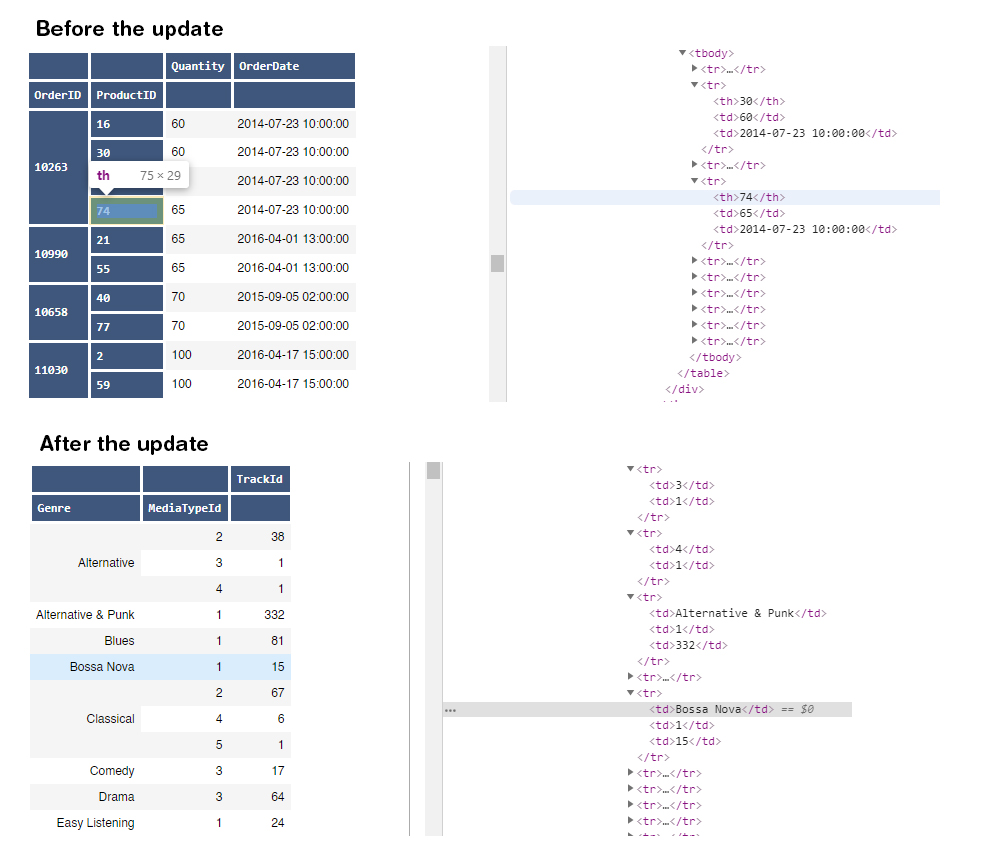 tags, just like the data cells (See image below. Note that both Genre and MediaTypeId are indexes):