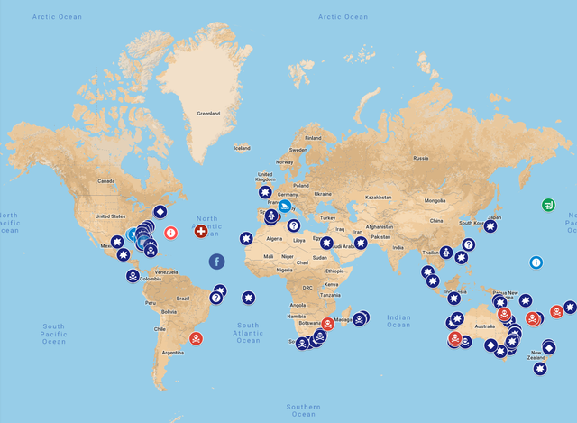 - Then using latitudes and longitudes of the tweet, the mapper plots the tweet to the world map. Here is a demo image, where tweets are mapped to their geo-locations with different icons represent various categories of disaster.