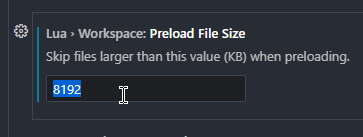 Next, we need to increase the "Preload File Size" in preparation for some of Photon 2's annotation files. Scroll until you find the option labeled "Lua > Workspace: Preload File Size", and set the value to something greater than 1000 (I use 8192, which is 8MB).