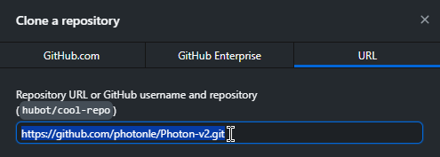 Copy and paste the repository URL https://github.com/photonle/Photon-v2.git into the URL field.