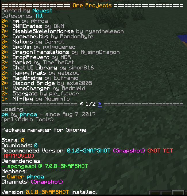 /ore install <pluginid> [version|recommended|latest] - Install a plugin