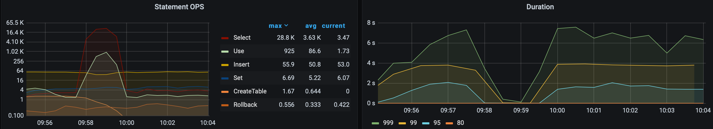 The below screenshot shows the statement OPS and the Duration and yes, trying to select massive amount of data.