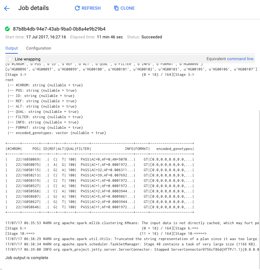 Once the cluster is up and and running we can submit a 'PySpark' job to run our python genomics clustering script.