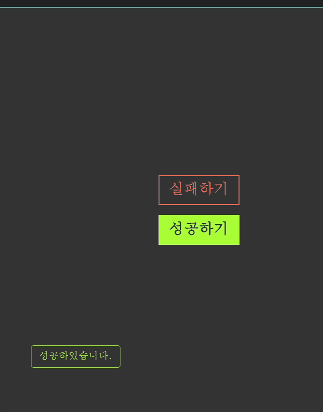 구현결과 요구사항 버튼을 누르면 왼쪽 아래 코너에서 스낵바가 옆으로 나옵니다. 나타날 때, 사라질 때 모두 애니메이션이 적용됩니다.(❌ 미구현) 일정시간이 지나면, 사라집니다. 여러번 눌렀을 때, 스택처럼 위로 스낵바가 쌓입니다. 3개가 초과하여 보여질 때는, 맨 아래 스낵바가 사라지고, 새로 나타납니다. 사라지고 나서 나타납니다. (❌ 미구현)