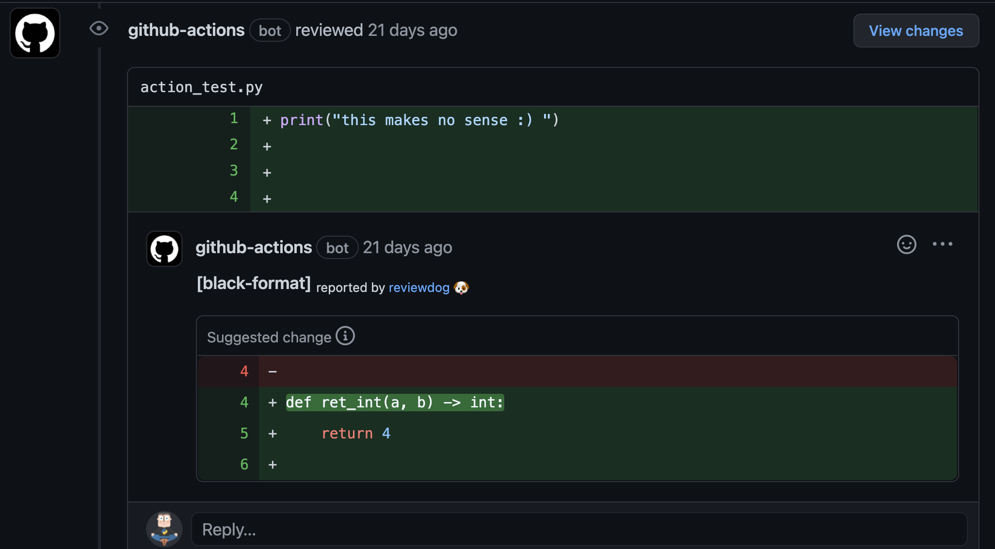 This repository provides a GitHub Actions workflow to check and nicely comment on pull requests in python code bases.