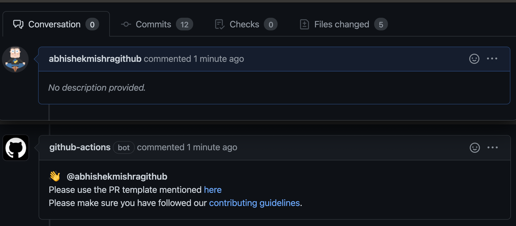 - Check for empty PR description.