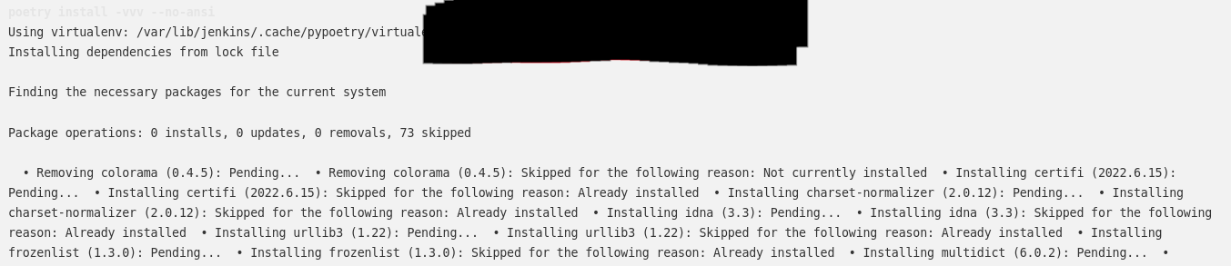 During verbose mode Poetry execution CI/CD output is poisoned by repeatable messages about package installation progress.