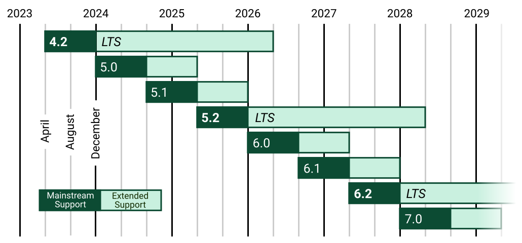 I feel this makes it more confusing. The color of each bar is supposed to represent the branch's current status, not its status at some particular time. For example, your version makes it seem like 3.11 was always in security-only mode, instead of marking it as bugfix for the first few years. We could make an alternative design where we switch fully to this PR's approach, but that would require for example that we color everything after the EOL as red for end-of-life on every branch. |