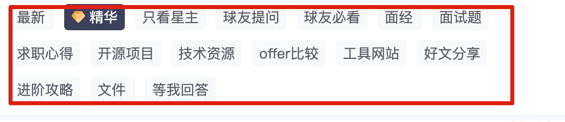 星球沉淀了几年的优质精华主题,内容涵盖面经、面试题、工具网站、技术资源、程序员进阶攻略等内容,干货非常多。