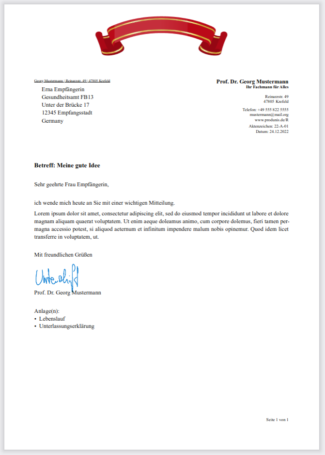 The letter format is optimized for German standards, specifically DIN-A4, but all parameters can be adjusted via YAML.