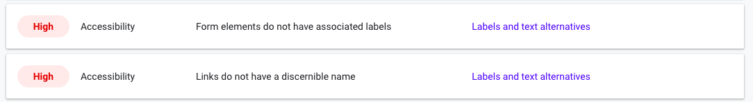 - Form elements do not have associated labels