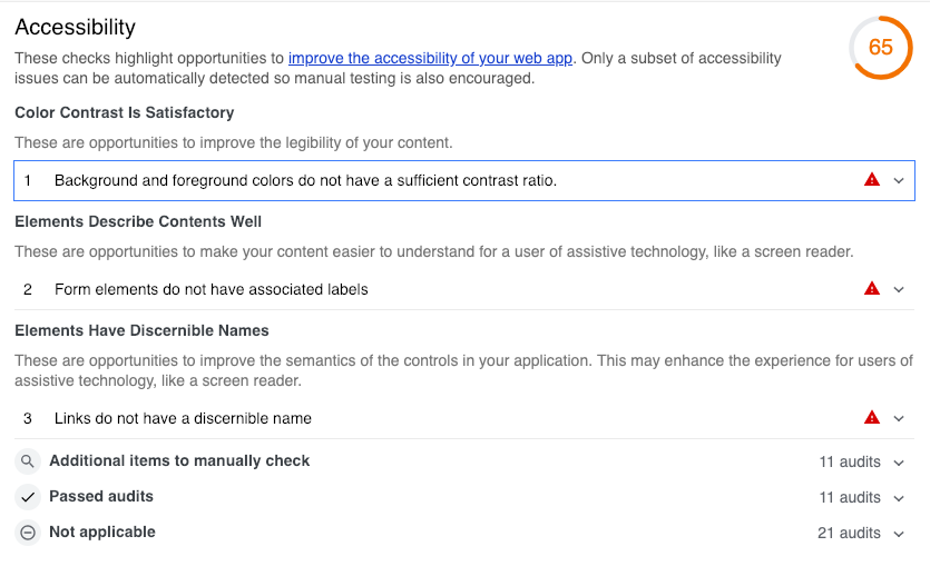 - Background and foreground colors do not have a sufficient contrast ratio.
