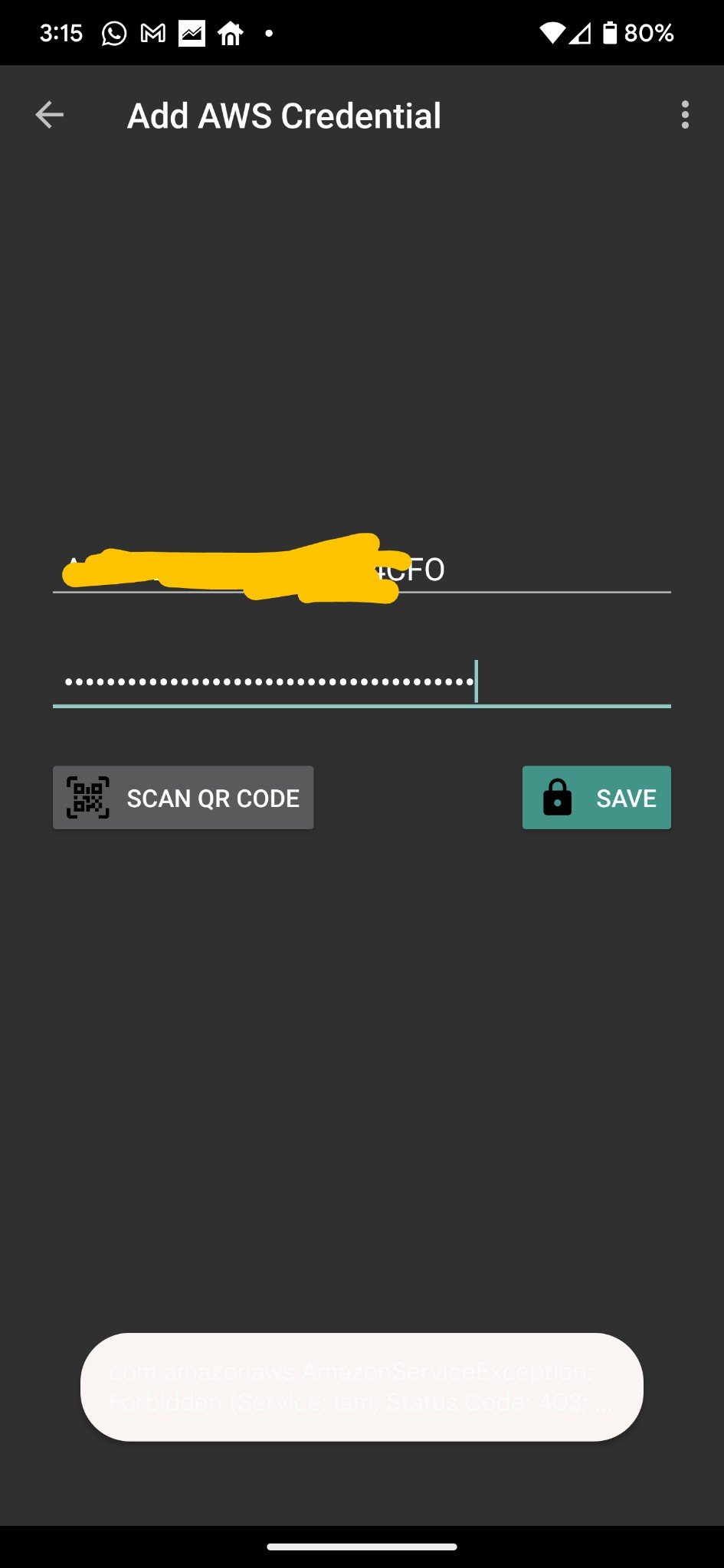 Just downloaded the app on Pixel 6 Pro and tried adding my IAM programmatic ID and secret, but I was being shown what I thought was an empty toast message while the values were not being accepted.
