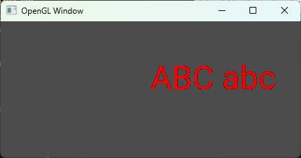 RenderText(shader, "ABC abc", gWindowWidth / 2, gWindowHeight / 2, 1.0f, glm::vec3(1.0, 0.0, 0.0));