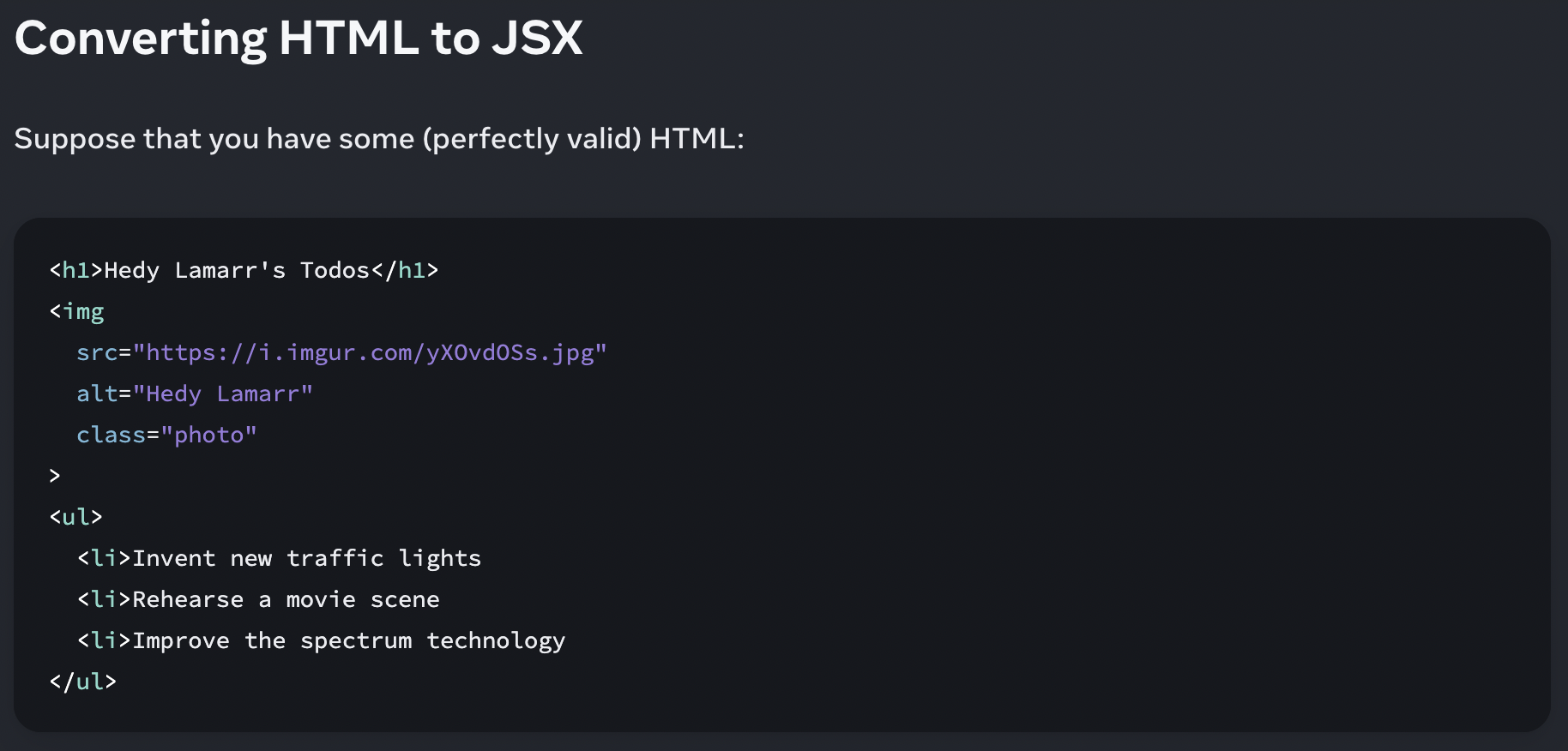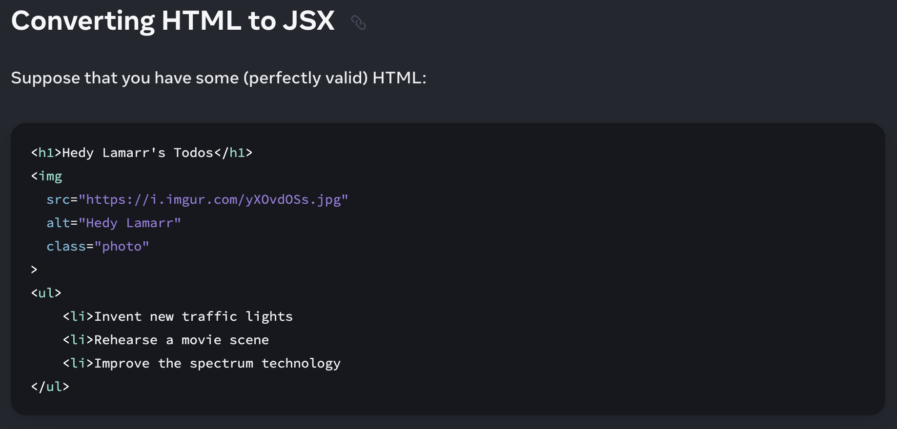 Fixed code indentation in learn/writing-markup-with-jsx.md for consistency.