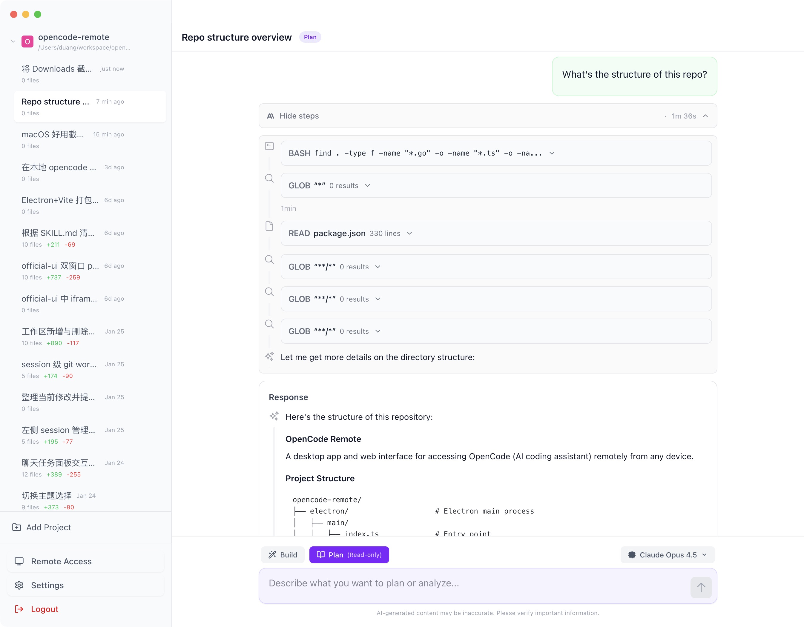 OpenCode Remote solves this by providing a desktop app and web interface that works from any device with a browser.