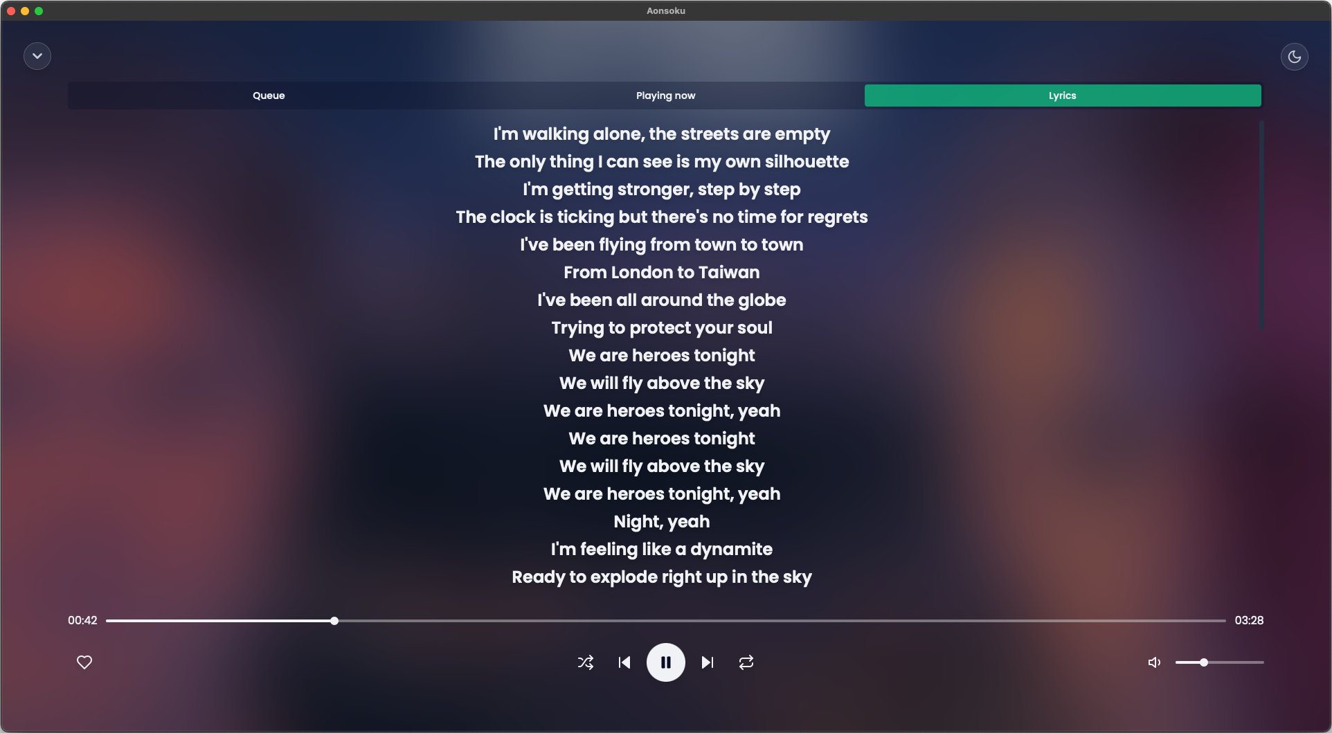 - Unsynchronized lyrics: If your songs have embedded unsynchronized lyrics, Aonsoku is able to show them.